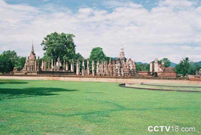 在泰文中,卓旁(Trapang)是“池塘”的意思,通(Thong)是“金子”之意,卓旁通寺就是“金池寺”,这座寺的大雄宝殿是三十多年前才盖的,塔是锡兰式的,参观重点则是凉亭中供奉的佛脚印。