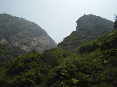 嶂山大峡谷 嶂山大峡谷位于安徽绩溪县城东南部,属天目山脉和黄山山脉结合带,大嶂山古称三天子都,三王山,嶂峰.景区中五十余个景点各具特色和神话传奇,其中毛泽东石像,百帐岩,葫芦潭,冠顶生花堪称四大奇绝。 百帐岩高460米,呈85度垂直,如巨钟覆地,雄伟壮美