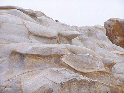 就在这“画卷”放直的地方,就在这神奇的山坡上,有着与“画卷创作”同具久远代的、一大批精雕细凿的艺术精品。它们的真正的归宿,古代应是在帝王家竹御花园;今天或许应在大城市的游园花圃。可它们哪儿也不去,就在这滨海的山坡上,日复一日、年复一年地静静数落着太阳与月亮的轮回,去实现自我的陪伴画卷的坚贞不渝的恋情。这里的“绵羊”在忧思,要是跳进台湾海峡能否游回来;这里的“鳄鱼”不下泥潭,却上山岗;这里的“王八”,千万年了,才敢伸出个头。这里的“天然动物”,正等着你去认识,去数数。