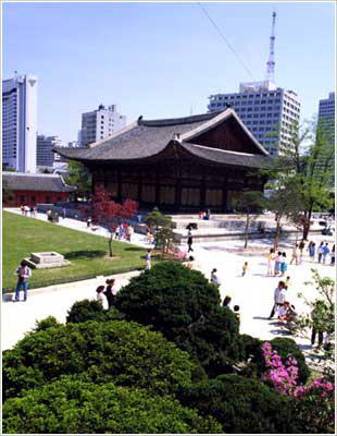 德寿宫位于首尔最繁华的街道上,其以富有韵味的石墙路而闻名。在首尔的宫殿中唯有德寿宫与西式建筑并肩而立,构成别样的景致。德寿宫原来是李朝成宗(1469-1494)的哥哥月山大君(1454-1488)的住宅。光海君(1575-1641)即位后将其改称为景云宫,从而使之具有了王宫的面貌。后来又改称为德寿宫。