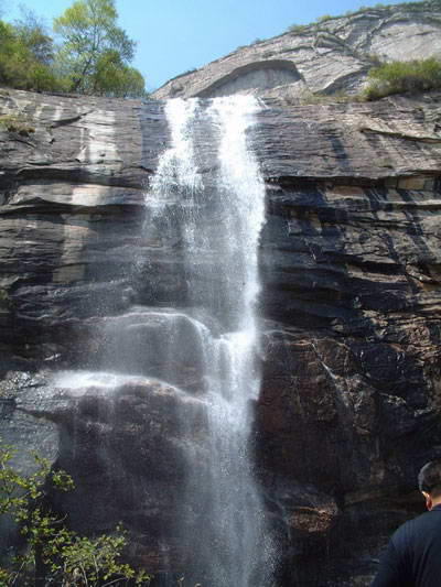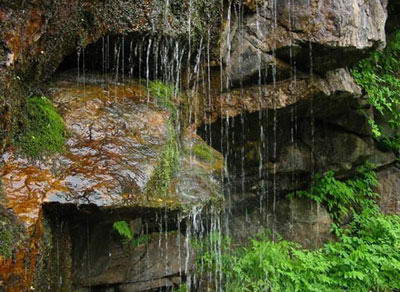 天生桥瀑布谷中九级瀑布,宛如九条巨龙,它们从崖壁上急流直下,天生桥瀑布最大的瑶台瀑布落差112米,奔腾的瀑布,势如奔雷走电的飞虹,声若惊雷,响彻山巅;有的瀑布如玉龙飞舞,气势磅礴,让人震惊,令人赞叹;就是枯水季节,它具有另一番风韵,有的瀑布银花飞溅,有的象喷洒的玉帘,有如月笼轻纱,秀女拔弦,十分动人。清脆的流水声,宛如少女弹奏的抒情曲,拨动人们的心弦。当山风习来,带过阵阵“蒙蒙细雨”,在阳光照射下,晶亮如玉,飘拂在人们的脸上,清新舒适,我们仿佛在雨露中沐浴。飞瀑流霞,给深谷增加了多少诗情画意,天生桥瀑布又给人们带来了多少翩翩暇想。