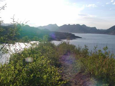 潘家口水库为引滦入津的主体工程,是华北地区的水库之一,它由一座拦河大坝和两座副坝组成,最大面积达72平方公里,最深处80米,水库总容量29.3亿立方米,库区水面105,000亩。水库两侧山峰陡峭,怪石如林,十分险峻。水库所在地域喜峰口一带是古长城雄关要塞,由于部分长城已没入水中,形成长城奇观--水下长城。