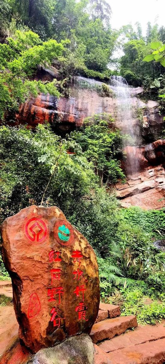 瀑布从红色丹霞悬崖上倾泻而下,气势磅礴,又像极了仙女的白色丝带,从天而降,美的任何词语都变得微弱。