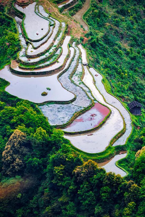 加榜梯田是苗族寨子,世代耕耘的杰作。每年一到灌水期,这里都吸引着全国各地的人们前来。一天中的不同时刻,梯田的美也不尽相同。