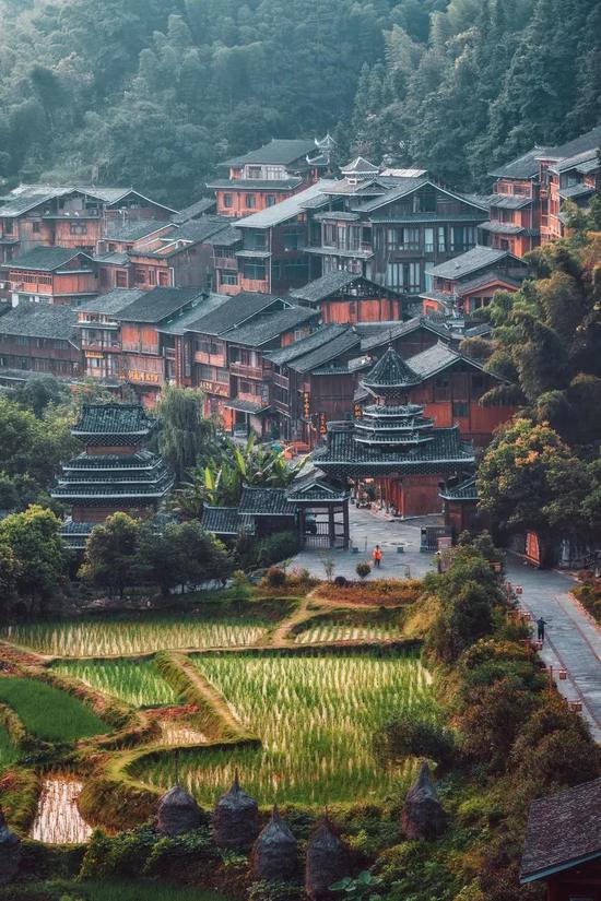 当然,到了夜晚这里就换了一种模样,同样美的惊艳。家家户户的灯光亮起,远远望去,像是宫崎骏的动画世界。你还可以穿上苗服,参加篝火晚会,参加长桌宴,这些都是贵州带给我们特别之处。