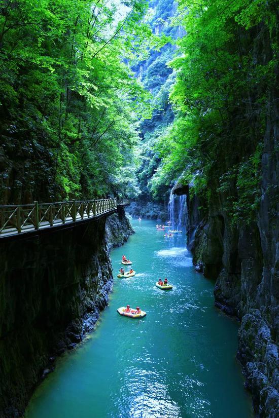 峡谷幽深,沿着栈道缓缓进入谷底,五步一美景,十步一诱惑,你会沉醉在这里,久久不舍离去。