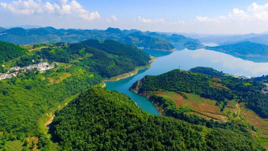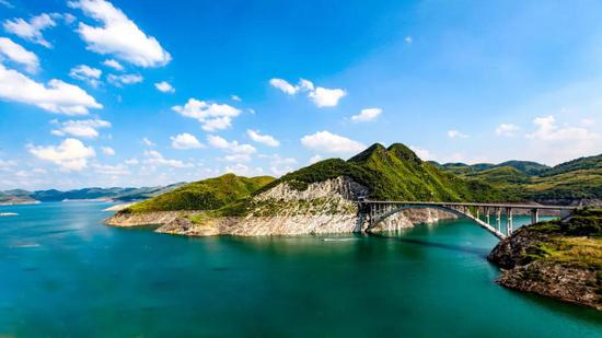 这80平方公里的水域,仿佛一块晶莹剔透的翡翠,远远望去,祖国的大好河山,便全部收入眼底。