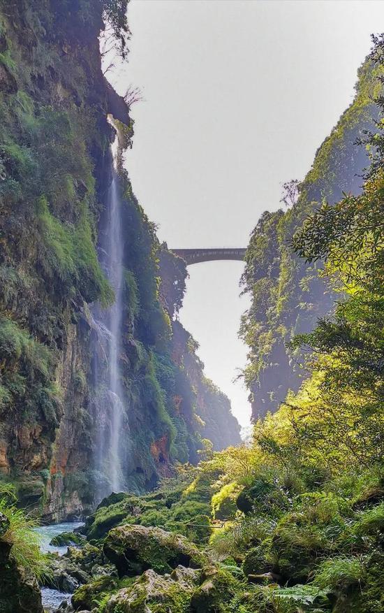 沿着山谷的栈道,一直走一直走,越往里,就越美,越往里,就越原始。